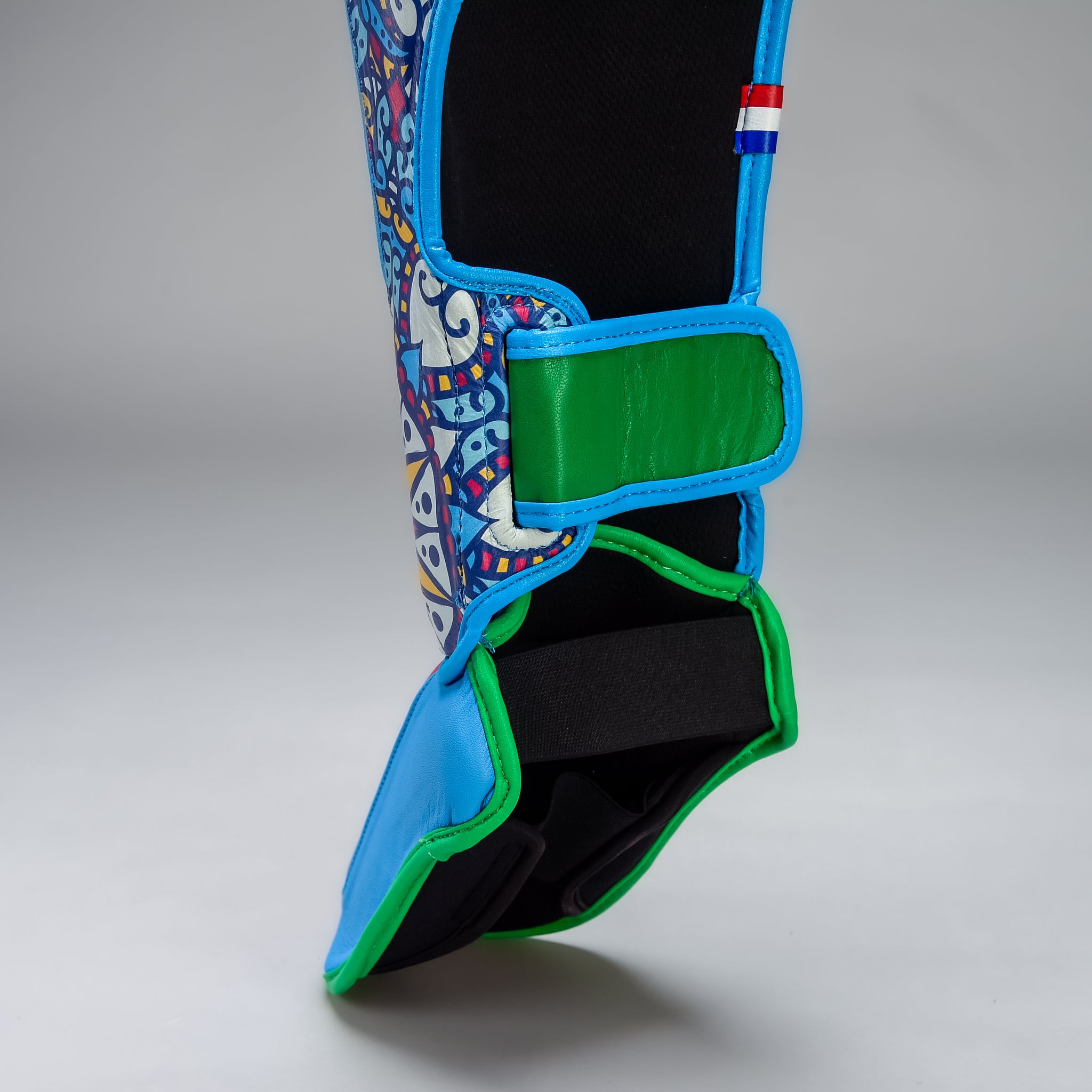 De ergonomische vorm sluit strak aan op het been en blijft stevig zitten tijdens elke trap of combinatie. Meervoudige foamlagen en een zachte binnenvoering zorgen voor ultiem comfort en bescherming. De verstevigde enkelzones bieden extra vertrouwen, zelfs tijdens de zwaarste sessies.